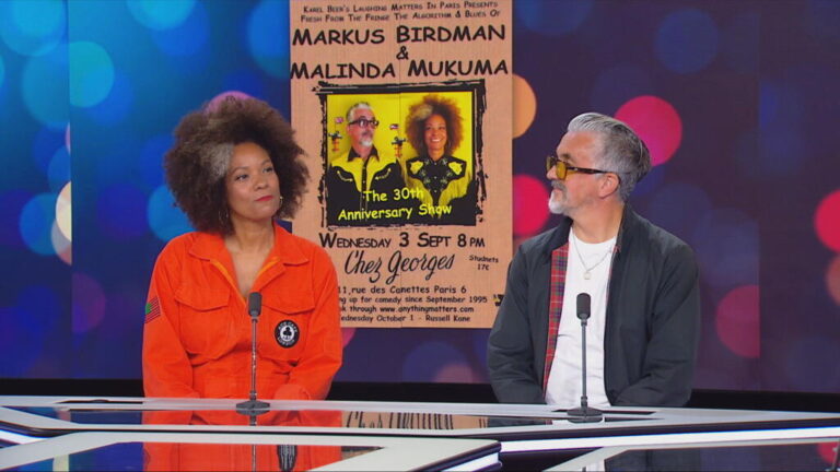 They met on Instagram during lockdown – now they’re roasting each other live on stage. Meet stand-up duo Markus Birdman and Malinda Mukuma, whose comedy show “Algorithm and Blues” brings fearless comedy, personal storytelling and cheeky banter to Paris’s Chez Georges venue. From “Britain’s Got Talent” to punchlines about strokes, names and love, no topic is off-limits. The duo join Eve Jackson on this edition of arts24.