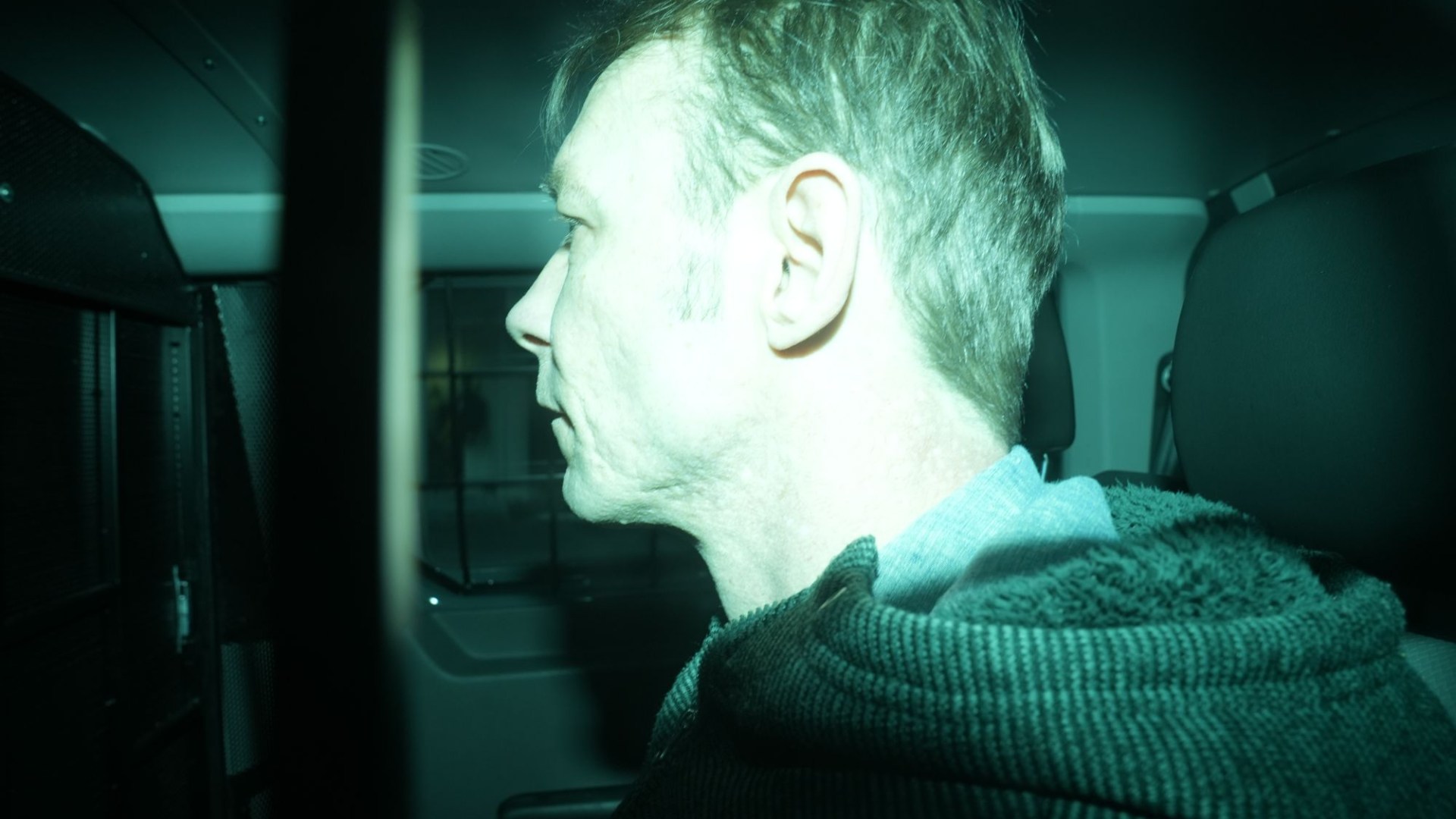 The convicted rapist was seen peering from the window of a barred police van as he pulled up to court.