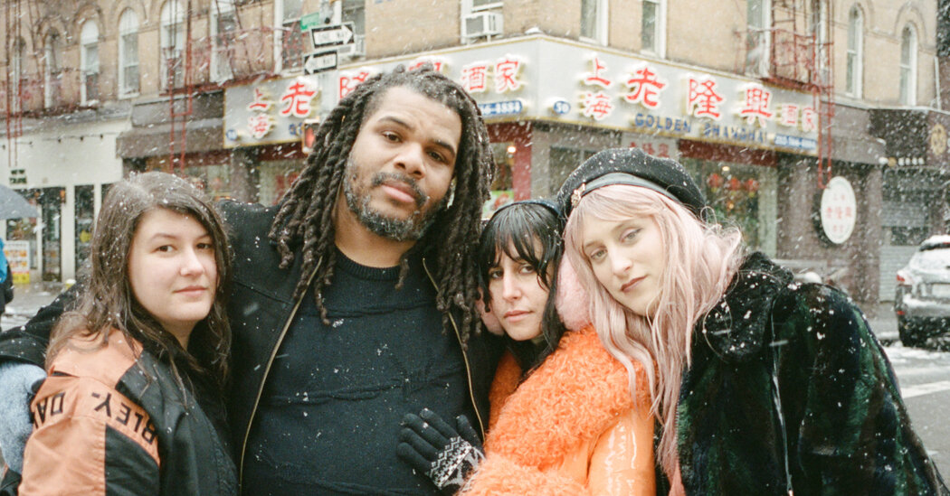 Pigs are pack animals — not so different from being in a touring rock band, the singer and guitarist Marisa Dabice, 36, noted playfully. Maxine Steen, 34, who plays synths and guitar, felt an instant kinship with a hesitant hog named Max, proclaiming them both “so aloof.” The band, which also includes the drummer Kaleen Reading, 31, and the bassist Colins Regisford, 37, known as Bear, has been spotted with livestock a lot lately. In two of its recent music videos, the quartet cavorts with cows and sheep, and a pig features prominently on the cover of its fierce new album, “I Got Heaven.”