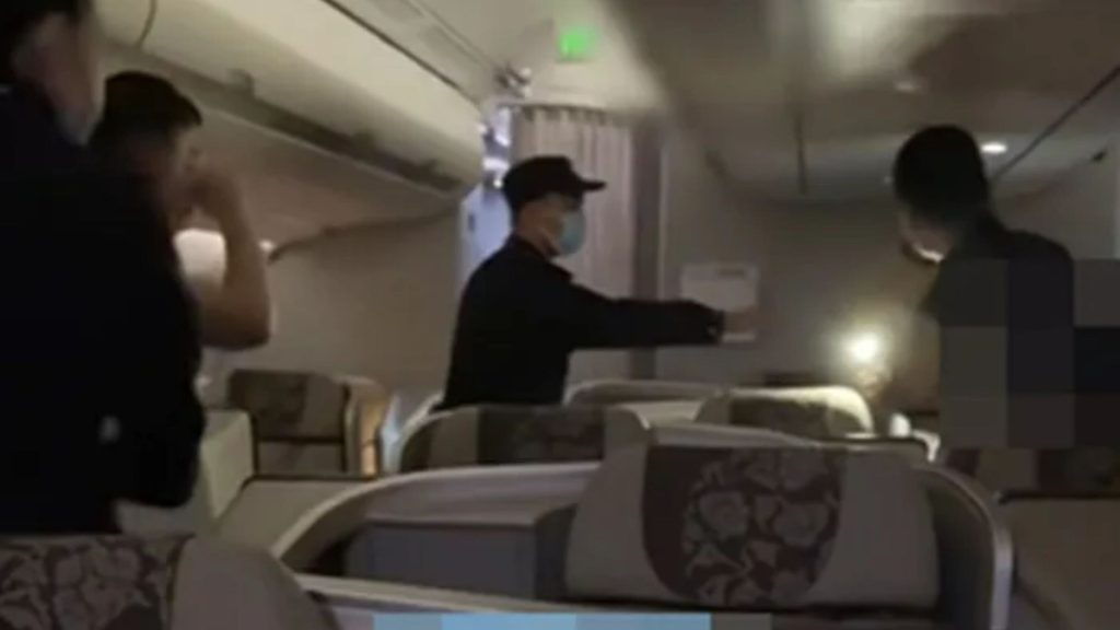 The shamed parents kicked up a fuss for three hours before their flight from Beijing to Chengdu, China was cancelled, leaving approximately 300 furious passengers stranded.