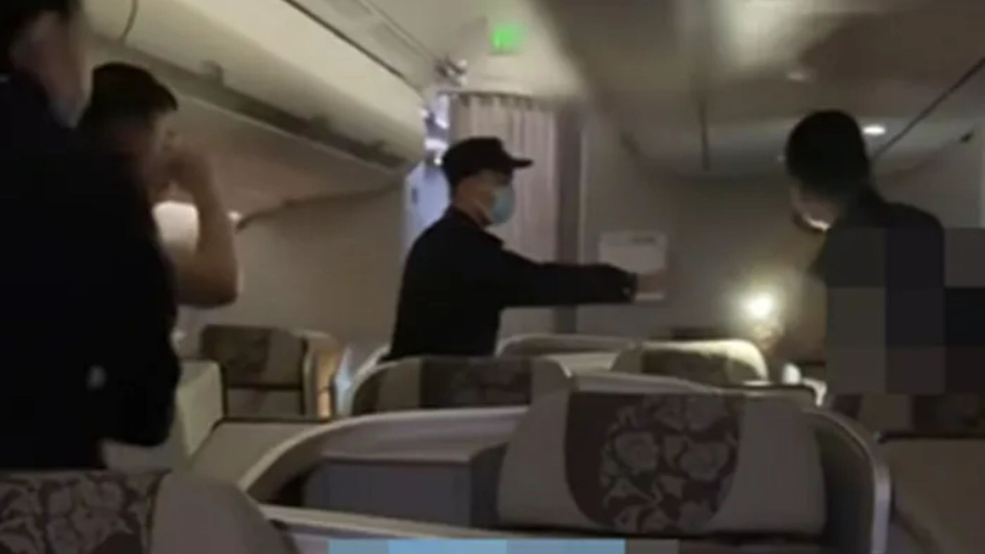 Mr Zhao filmed how cabin crew, security guards, and passengers pleaded with the furious dad as he tried to get his way.