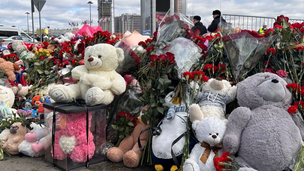 On Monday morning – three days on from the horrors of the Crocus City Hall terror attack – people were still streaming to the site to lay flowers.
