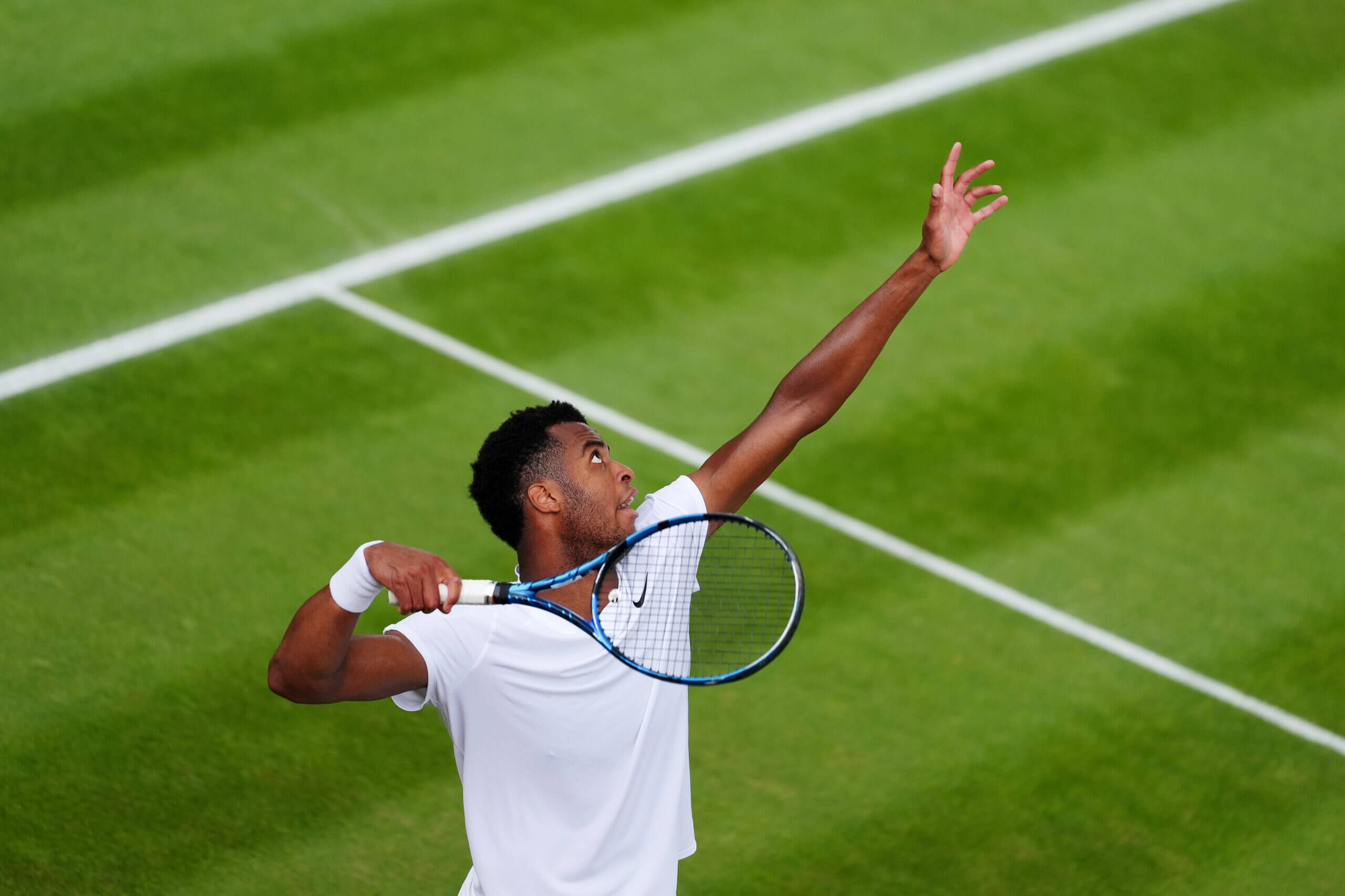 Mpetshi Perricard’s serve is equally effective during the Queen’s match at Wimbledon. (James Fearn/Getty Images)