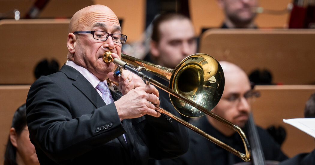 Alessi brought a clear, smooth sound to the solo part’s droops and hoots. His slippery, jittery cadenza in the first section, over a thin frost of strings, is the most memorable moment in the score, though the eerie sliding of those strings is an effect that gets old fast. By the end of the concerto, with the trombone section acting as a kind of support team for the soloist, Asian and Western elements come together, both traditions rendered equally cloying.