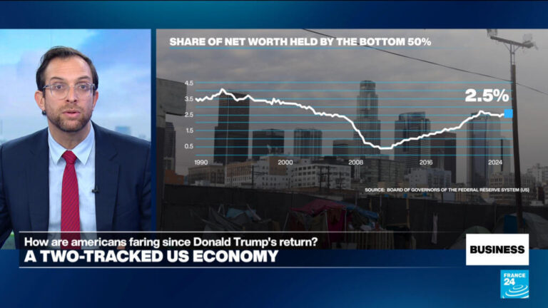 It’s been one year since Donald Trump started his second term as US president, and he’s pointing to the country’s strong GDP growth rate and stock market performances to paint a glowing picture of the economy. But a closer look shows that while activity is booming, it’s mostly benefitting the country’s wealthier households. Also in this edition, we see how Trump’s tariffs have pushed German winemakers to look to China for their exports.