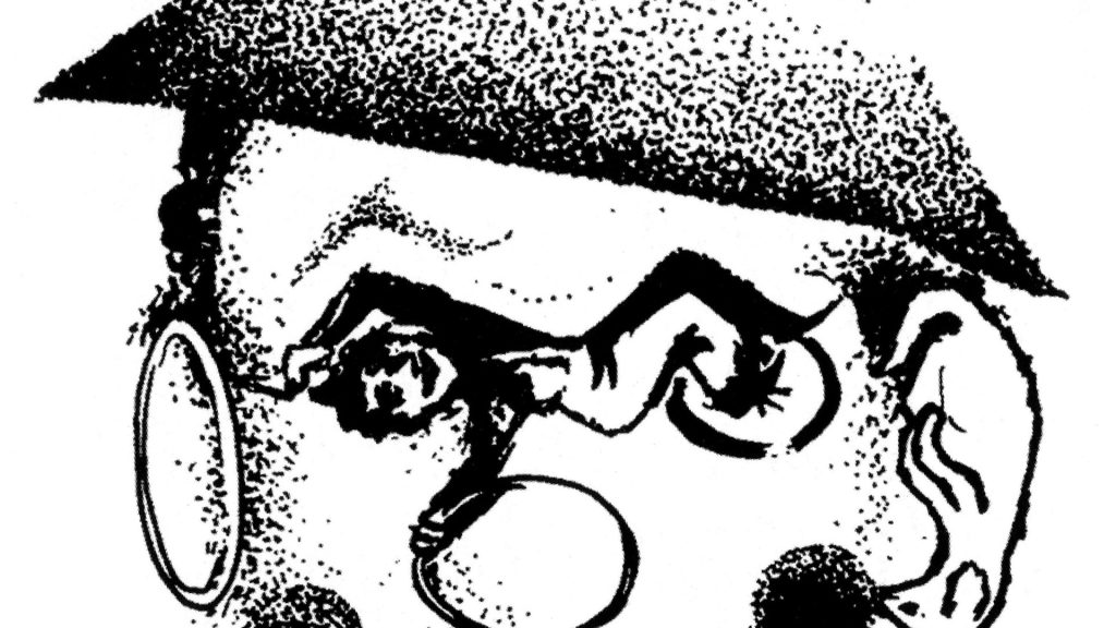 One silhouette is located at the top of the picture where the clown’s eyes and arched eyebrows are formed.