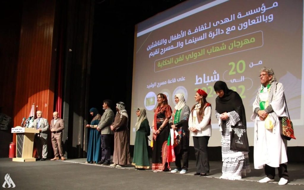 The Shehab International Storytelling Arts Festival opened its first session on the stage of the Al-Rashid Theater in Baghdad, which is organized by Al-Huda Foundation for Children and Youth Culture in cooperation with the Department of Cinema and Theater, with the participation of a number of Arab and foreign countries, and in the presence of the Palestinian ambassador in Baghdad and a number of artists.