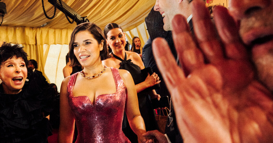 And judging by the bright smiles captured by our photographer, Sinna Nasseri, who was on hand at the Dolby Theater in Los Angeles, those in attendance were in the mood to celebrate. The starry arrivals included cast and crew of the year’s most-talked-about films, from “Barbie” to “Oppenheimer” (the night’s big winner with seven Oscars) to “Poor Things.” A few of our favorite Oscars snaps are below for your scrolling pleasure. — REBECCA THOMAS