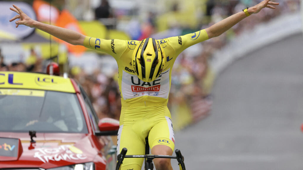 Tadej Pogacar overtook three riders on the final 16-kilometer climb to win stage 19 of the Tour de France in the southern Alps on Friday. Defending champion Jonas Vingegaard finished sixth and now stands more than five minutes behind his main rival with two stages to go.