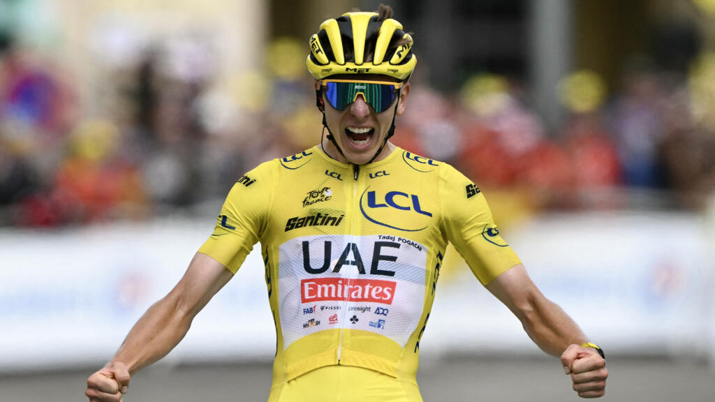 Two-time champion Tadej Pogacar surged ahead on the last climb to win the mountainous 14th stage of the Tour de France and extend his overall lead on Saturday.