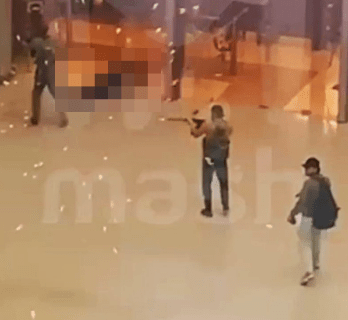 Horrifying footage showed four gunmen storming into the building before unleashing hell at the crowd in Russia’s deadliest terrorist attack in 20 years.