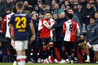 Feyenoord looked somber after their top-flight draw with Twente. Head coach Arne Slaughter, goalie Justin Bulow and left back Quilinski Hartman went home grumpy. Hartman also explained why things got so out of control during the riots.