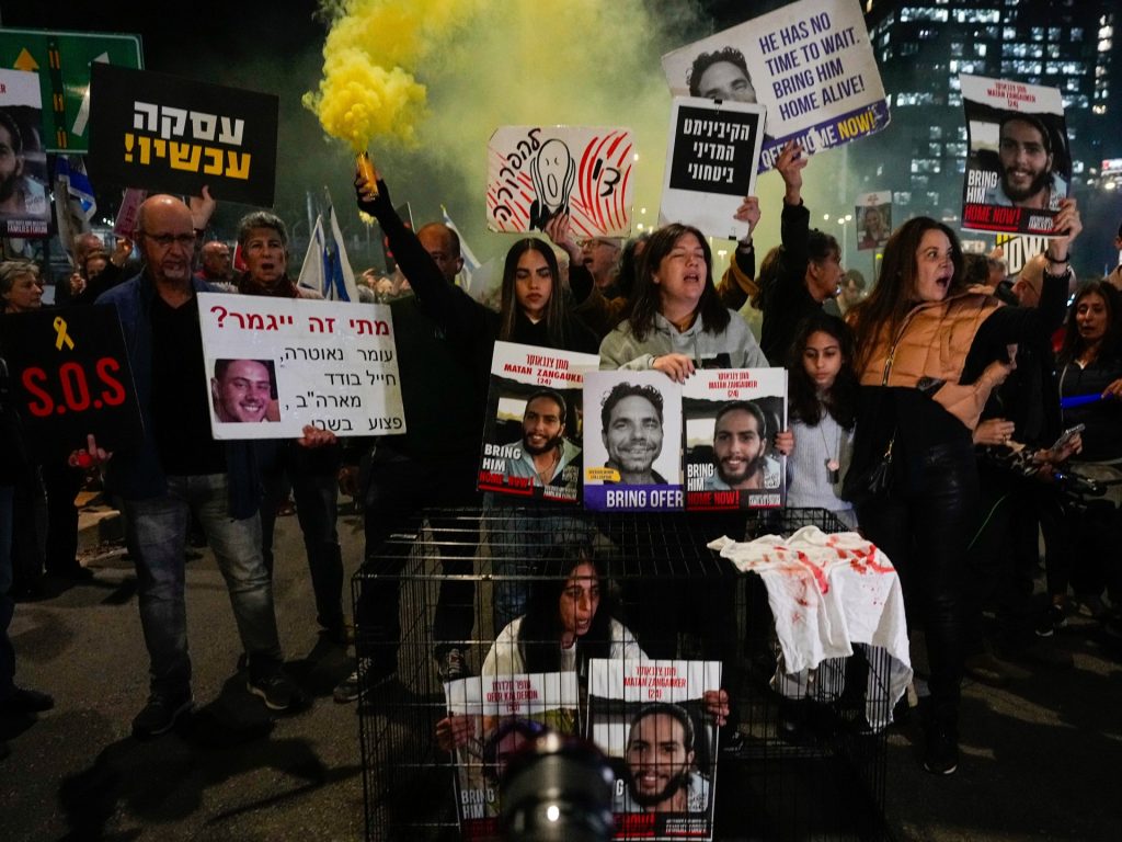 Share Facebook Twitter LinkedIn Pinterest Email NewsFeed Relatives of Gaza captives locked themselves in cages and blocked roads in Tel Aviv, calling on Israeli Prime Minister Benjamin Netanyahu to reach a deal to release their loved ones. Published On 27 Mar 202427 Mar 2024 Source link