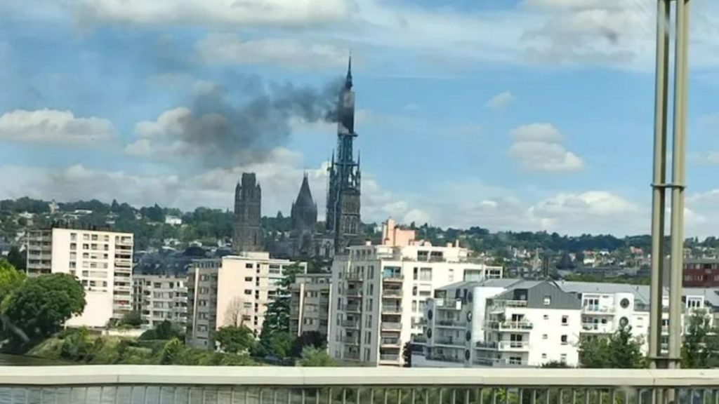 A HUGE fire has been seen ripping through the historic Rouen Cathedral in France as thick plumes of black smoke billow into the sky.