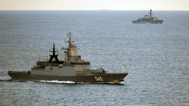 Once the Russian vessels had passed UK waters, HMS Iron Duke handed over shadowing duties to the French navy.