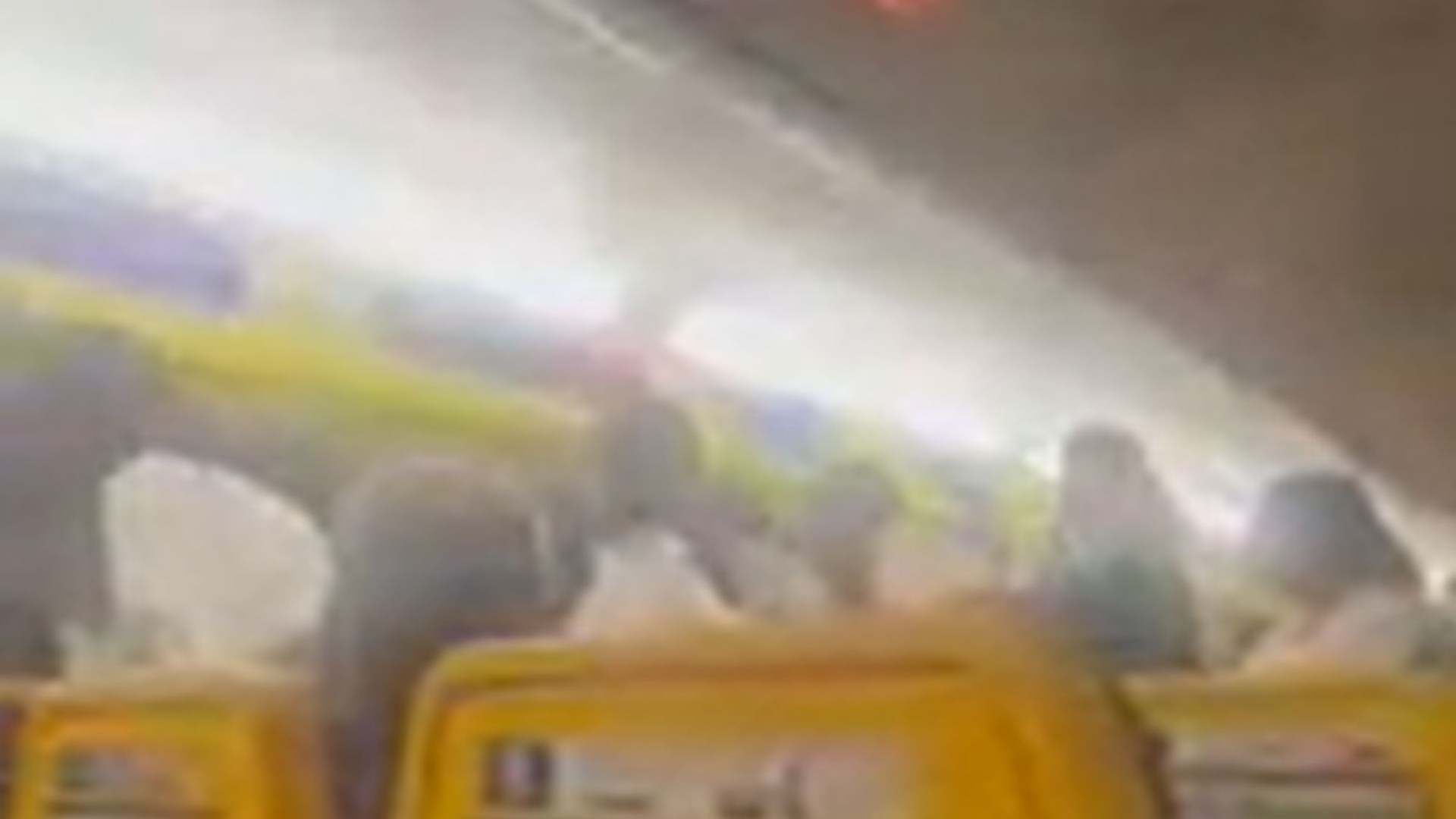 Shocking footage shows holidaymakers screaming at each other across the plane while flustered airline staff try to calm them down about 30,000ft up.
