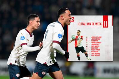 Among the teams of the week in the 25th round of the Premier League, PSV, Feyenoord, AZ Alkmaar and Twente dominate. The best players this week are in the backline, with PSV’s Sergino Dest and Twente defender Max Bruns both rated 8 points.