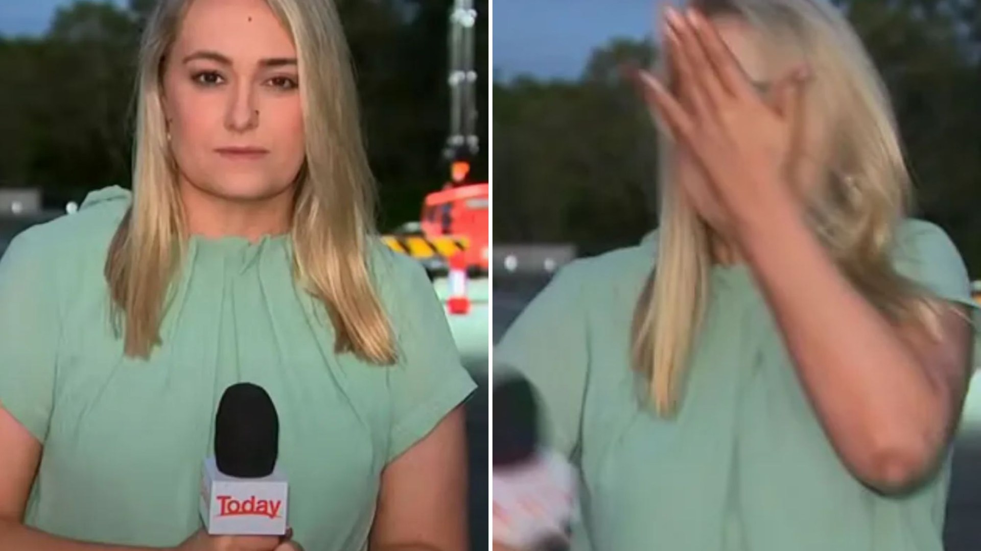 Andrea Crothers – a journalist for Channel 9 Today Show – was covering flood waters in Brisbane, Australia when she got swarmed by mosquitoes.