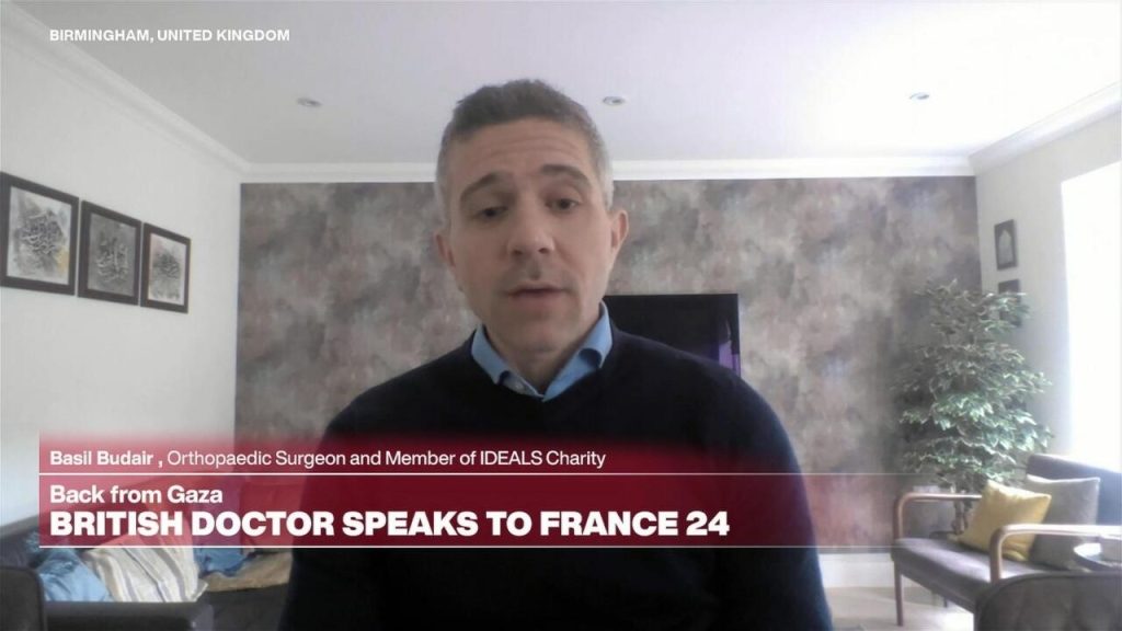 FRANCE 24 spoke to Basil Budair, a British orthopaedic surgeon and member of IDEALS, a charity providing medical aid in conflict zones. He recently returned from a mission at Gaza’s European hospital in the southern city of Khan Younis – one of the last health centres still operating in the besieged enclave. The World Health Organization has described the state of healthcare in Gaza as being “beyond words”. Budair called the situation “completely unimaginable” and regretted the lack of staff and medical equipment at the European hospital. He also recounted how two of his patients were severely injured in separate missile strikes and survived complex surgery, but later died of an infection that their bodies were too weak to cope with.