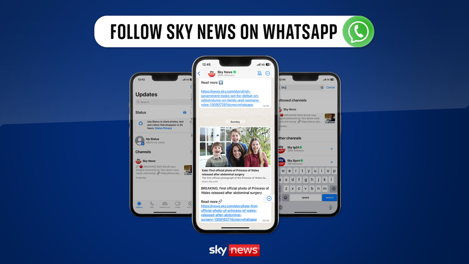 Sky News is one of the leading news publishers on WhatsApp, with hundreds of thousands of people receiving our updates.