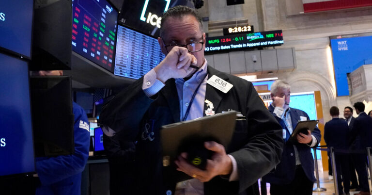 Investors appeared to rush into the safety of government debt, initially helping to lower the yield on the 10-year Treasury note to its lowest level since October, before reversing course later in the afternoon. Yields move inversely to prices. Mounting concerns about the economy’s ability to withstand incoming tariffs for too long were also evident in a shift in investor expectations of the number of times the Federal Reserve will cut interest rates.