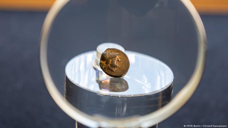 The small bronze coin weighs only 7 grams (0.25 ounces) and measures 12 millimeters (0.5 inches) and is currently on display at Berlin’s PETRI museum in the “current finds” exhibition space.