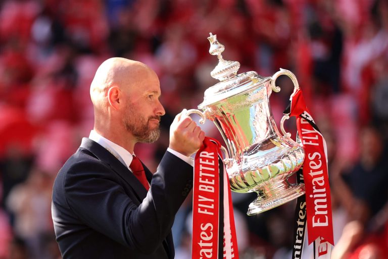(Above: Eric Ten Witches and the FA Cup; photo by Alex Pantlin via Getty Images)
