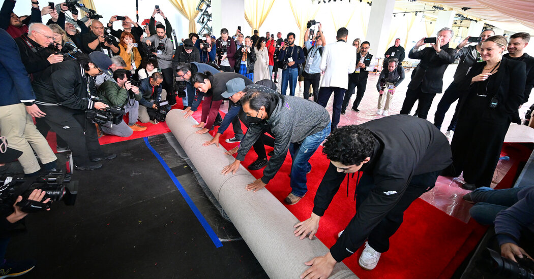 Last year’s champagne carpet — the first time in more than six decades that the academy’s arrival rug was not red — was part of a trend of colorful carpets that have swept premieres, galas and award ceremonies across the country in recent years. See the Emmys (gray) and the world premiere of “Barbie” in Los Angeles in July (pink, obviously).