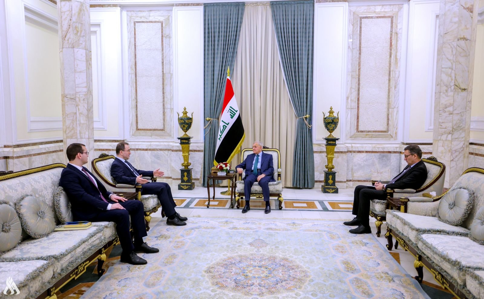 During the meeting, the President praised “the strong relations between Iraq and Russia,” stressing “the importance of working to strengthen them in areas of common interest, especially in the economic aspect, in addition to developing the work participation of Russian companies in Iraq.”