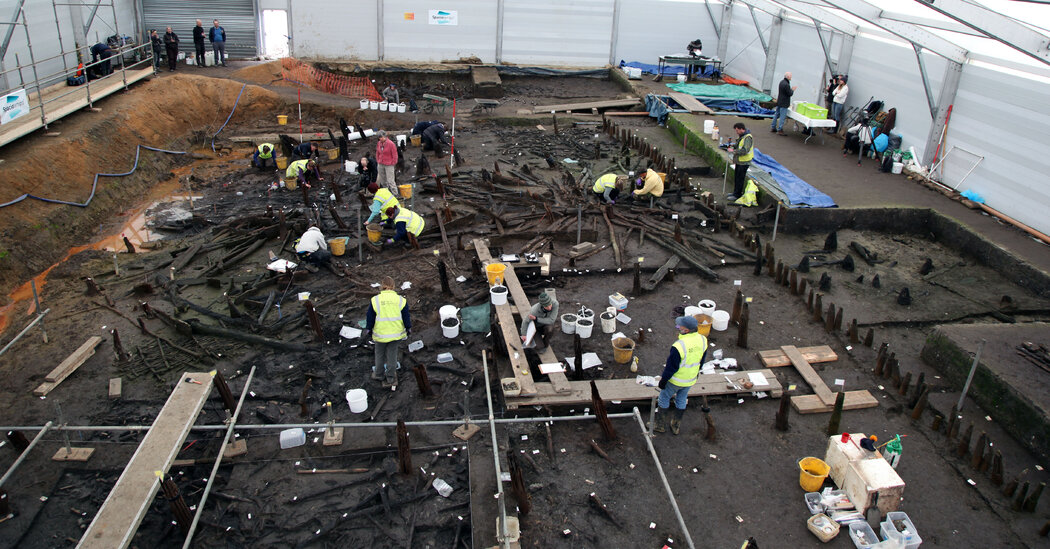 The discovery of nine log boats — dugout canoes as long as 28 feet — buried in the muck hinted at the vast wetlands that once blanketed the region. “Boat journeys through reed swamps to the woodlands would have been made many times during the site’s short life,” said Chris Wakefield, the project archaeologist. “In summer, that meant traversing clouds of mosquitoes.”
