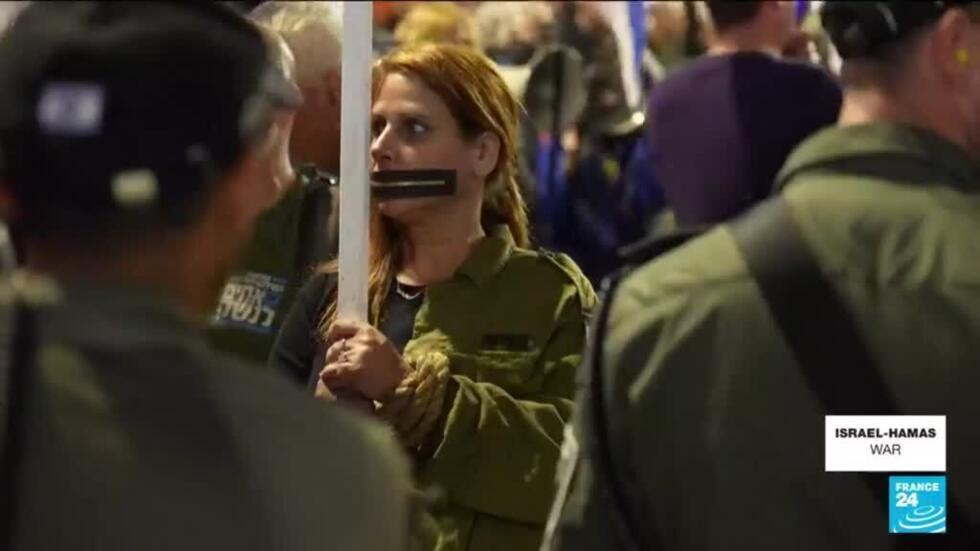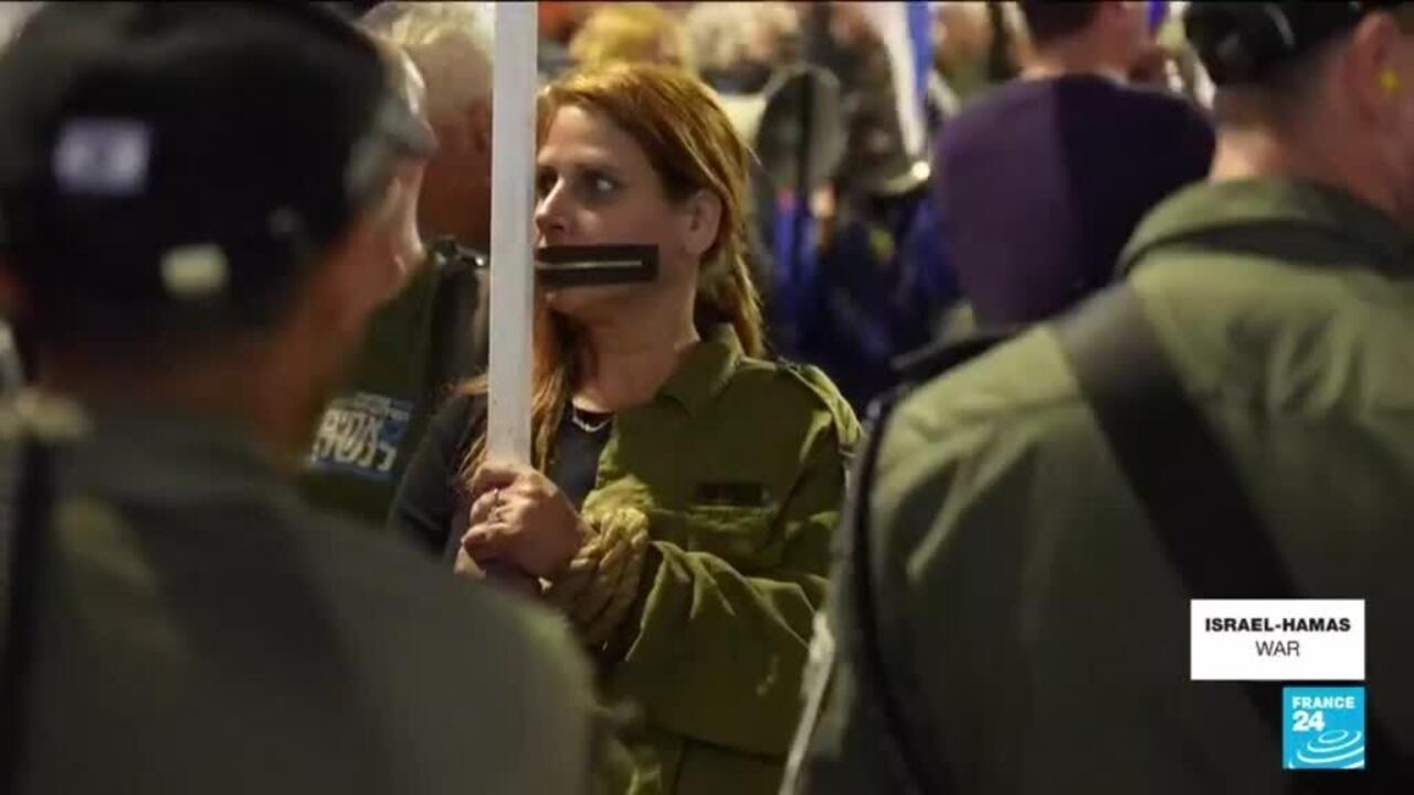 Issued on: 25/02/2024 – 11:28Modified: 27/02/2024 – 09:15 01:47 Anti-government protesters were also out in Tel Aviv, blocking streets and calling for Netanyahu’s government to step down as authorities deployed water cannons and mounted officers in a bid to disperse them. Read more on related topics: