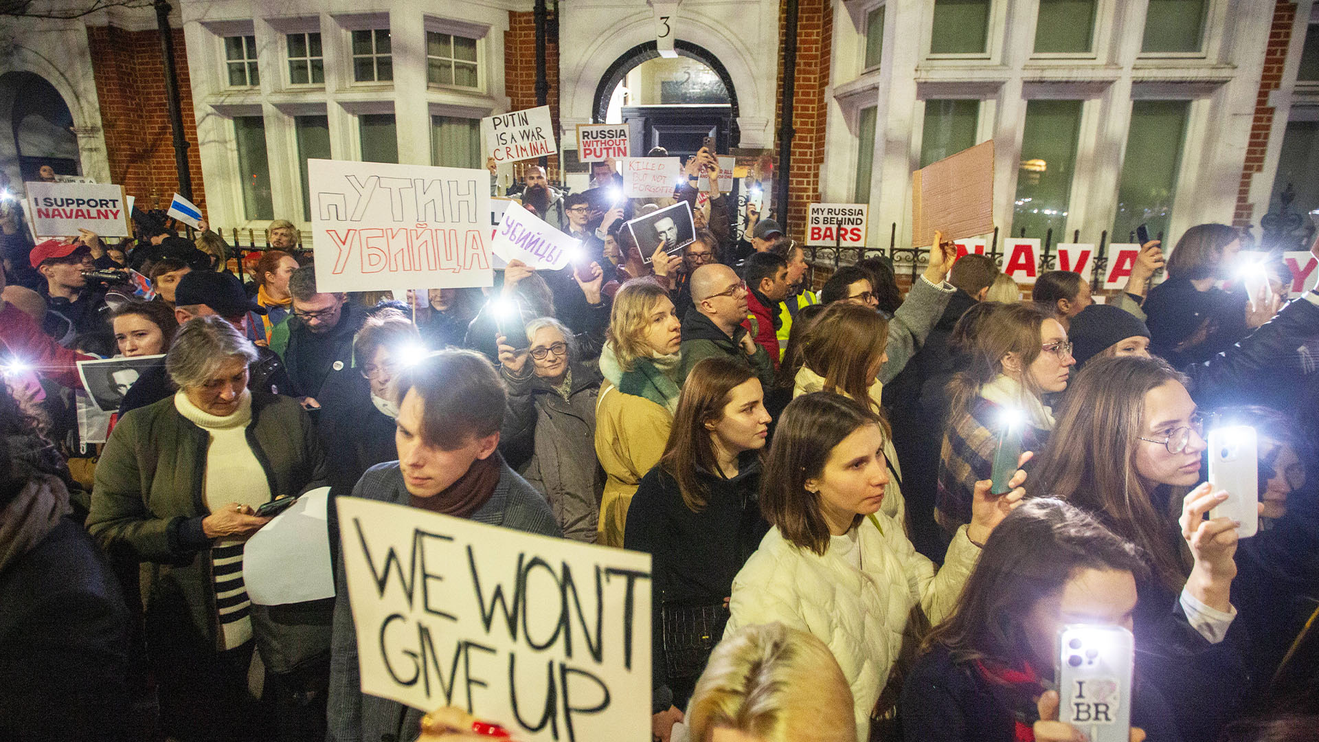 THOUSANDS of protesters swarmed Russian embassies to express their outrage over the death of Alexei Navalny.