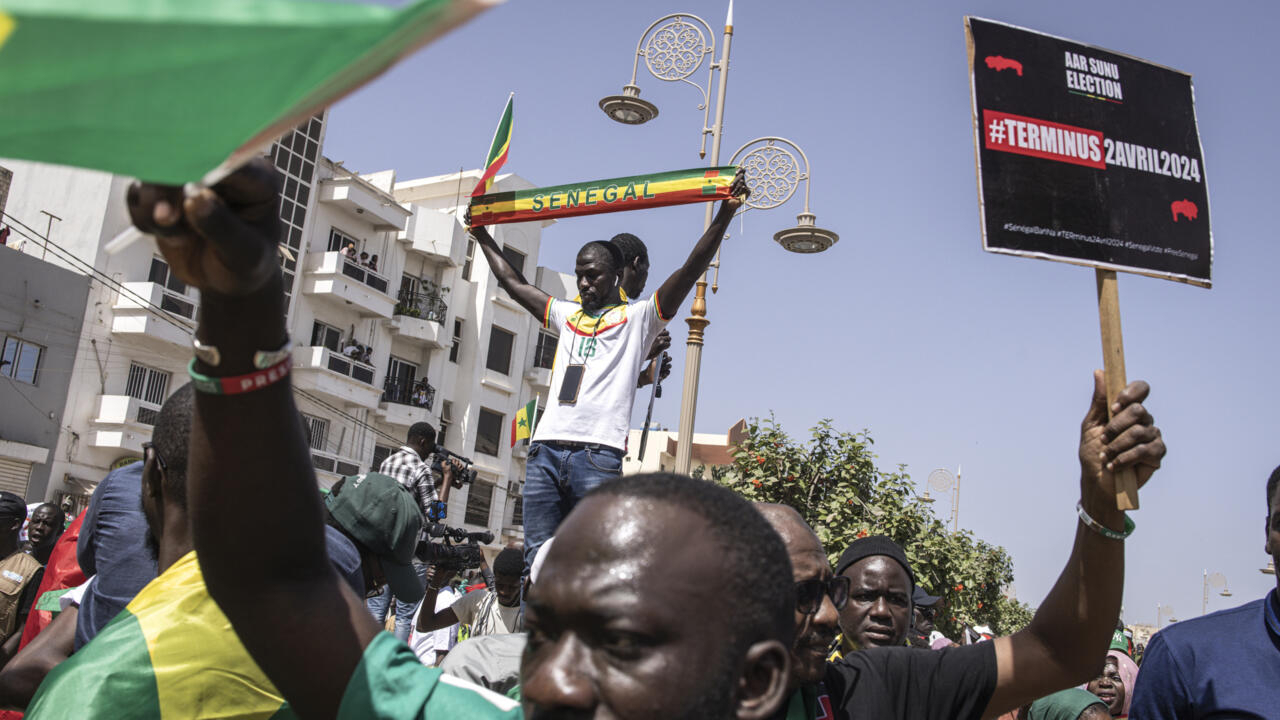 They held up placards reading “Free Senegal”, “Respect the election date” and “No to a constitutional coup d’Etat”.