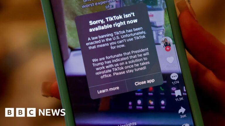 A message appearing on the app for US users said a law banning TikTok had been enacted, meaning “you can’t use TikTok for now”.