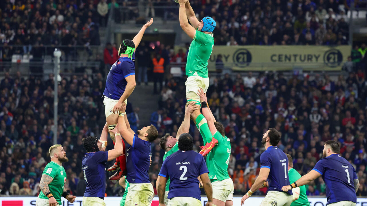 A French decision to kick to the corner backfired after Beirne was hoisted high to pick off Peato Mauvaka’s throw-in, handing the advantage briefly back to the Irish before they infringed.
