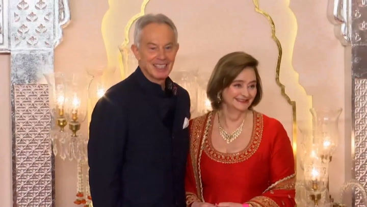 Sir Tony Blair was among guests who attended the wedding of the youngest son of Mukesh Ambani, Asia’s richest man, in India on Friday, 12 July.