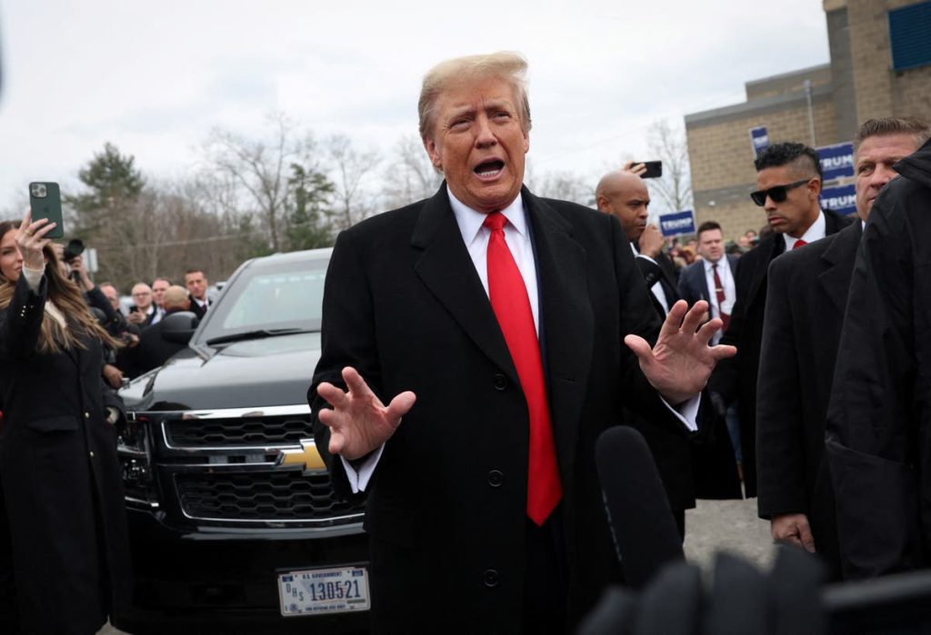 In pictures: Trump greets supporters as New Hampshire primary voting underway
