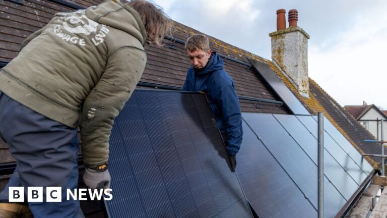Andrew Aitchison/Getty ImagesHouseholds will be eligible for thousands of pounds’ worth of solar panels and other green tech to lower their energy bills, the government has announced.