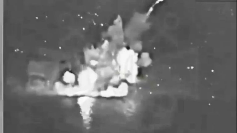 Dramatic footage shows a giant fireball erupting from the Russian headquarters after it was ruthlessly targeted by the Ukrainian navy.