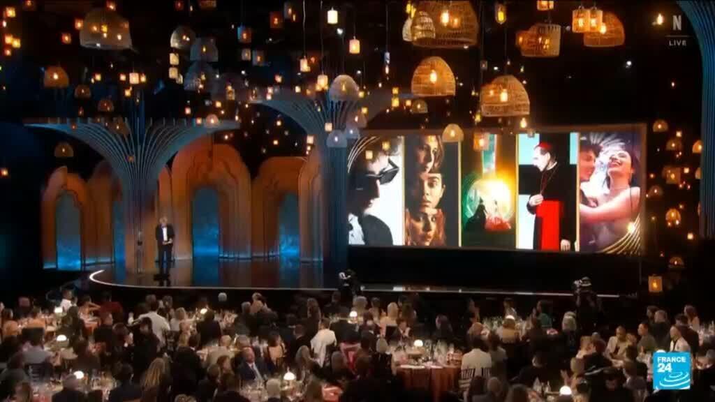 Vatican thriller “Conclave” won top prize at an unpredictable Screen Actors Guild Awards gala Sunday, throwing a potential late curveball into the Oscars race just a week before the Academy Awards. Story by Florent Marchais.