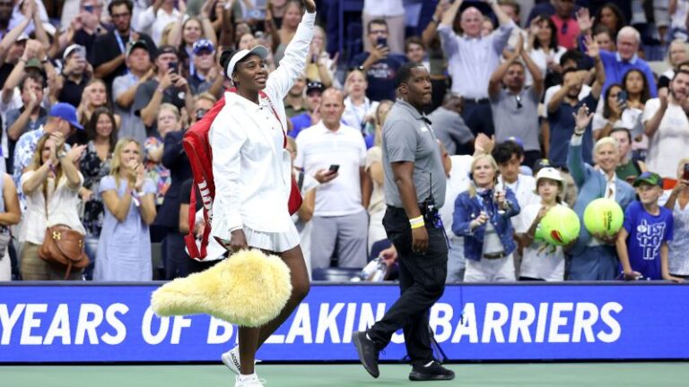Williams, along with her sister Serena, have spent their entire sports careers carving out space for stylistic expression — a journey that hasn’t come without controversy. As a teenager, Williams was infamously penalized by an umpire at the 1999 Australian Open for her choice to wear beaded braids after some fell onto the court. In 2010, she made headlines for wearing a black and red lace mini dress with a ruffled skirt which some likened to lingerie. While competing at Wimbledon in 2017, she wore a hot pink bra under her tennis whites and was forced to change after it became exposed (the event has long mandated that all players only wear white undergarments. The rule was relaxed in 2022).