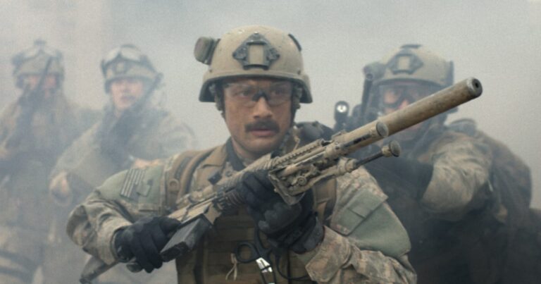 “Warfare” tells the story from the ground level, focusing on the moment-to-moment action of a Navy SEAL team during a sniper overwatch mission in Ramadi, Iraq. They embed themselves at night in a split-family home before getting discovered and attacked.