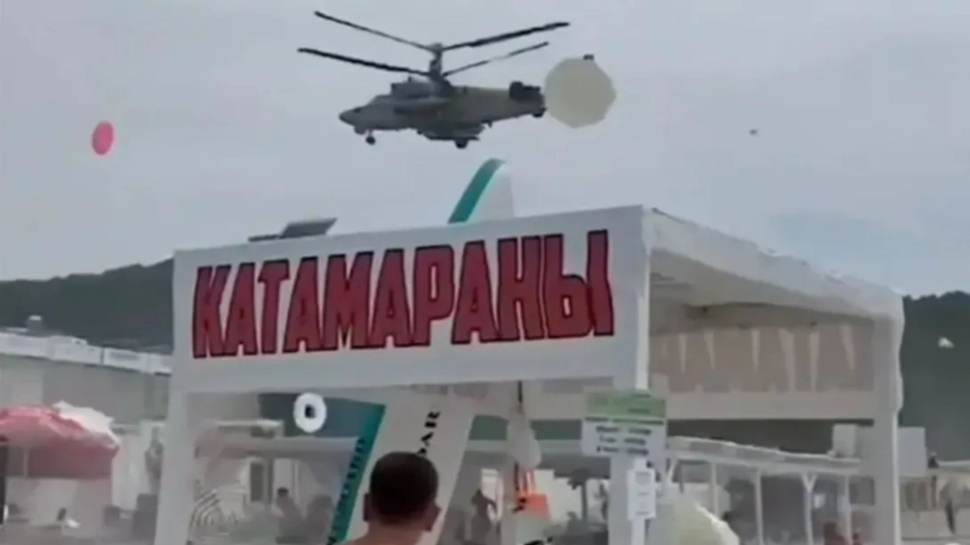 In Krasnodar, another Ka-52 chopper from despotic Putin’s fleet was seen buzzing low over the sunbathers as blew away all the tents and sunbeds.