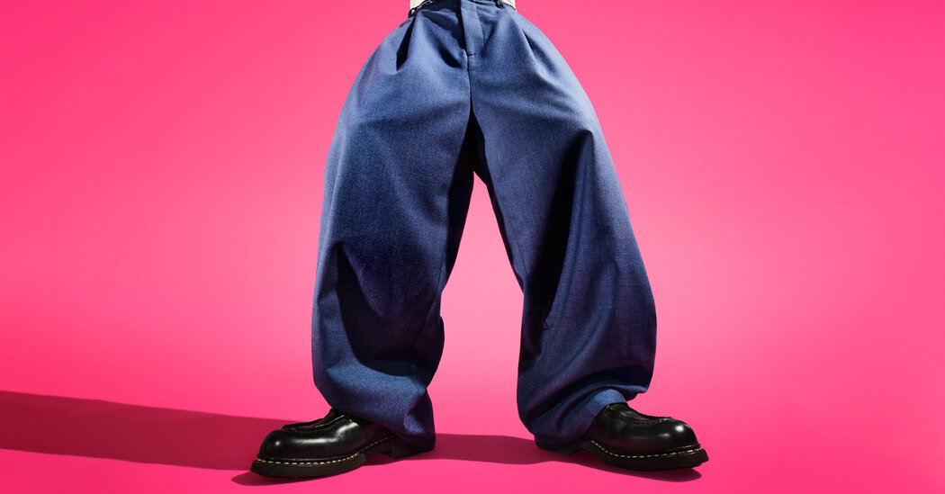 Recently, a late-period portrait of Miles Davis — as universal an avatar of coolness as modernity has produced — made the rounds on style-focused corners of the internet. This was not the natty, circa-1950s, Oxford-button-up-and-slim-trousers Miles Davis we’re used to seeing. He has long hair and tiny sunglasses. He is leaning against a white Ferrari Testarossa. His name is on the license plate. But none of that is the focal point. The focal point is Davis’s enormous pants. They are tan, with deep pleats and a towering rise, and they pool behind the tongues of his white loafers like tidal waves converging on a couple of dinghies. They are large but not structureless — they echo and expand on his stance with a graceful excess, the way a sail echoes and expands on the wind. They look tremendously, gorgeously, inspiringly stupid.