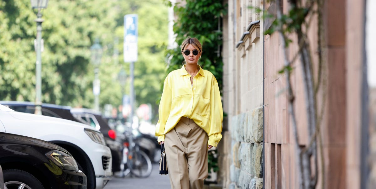 For those interested in the oversized, absolutely untucked trend, it’s all about controlling volume relative to your figure. Berkeley, who created the body shape styling app Think Shape runs, says that understanding your proportions is essential. ‘Wearing a belt with oversized jackets, shirts and sweaters helps control the bulk of looser silhouettes – as does rolling up sleeves,’ she explains. “It looks good, but you need to know your leg length and where to place that belt on your body so you don’t ruin your proportions.”