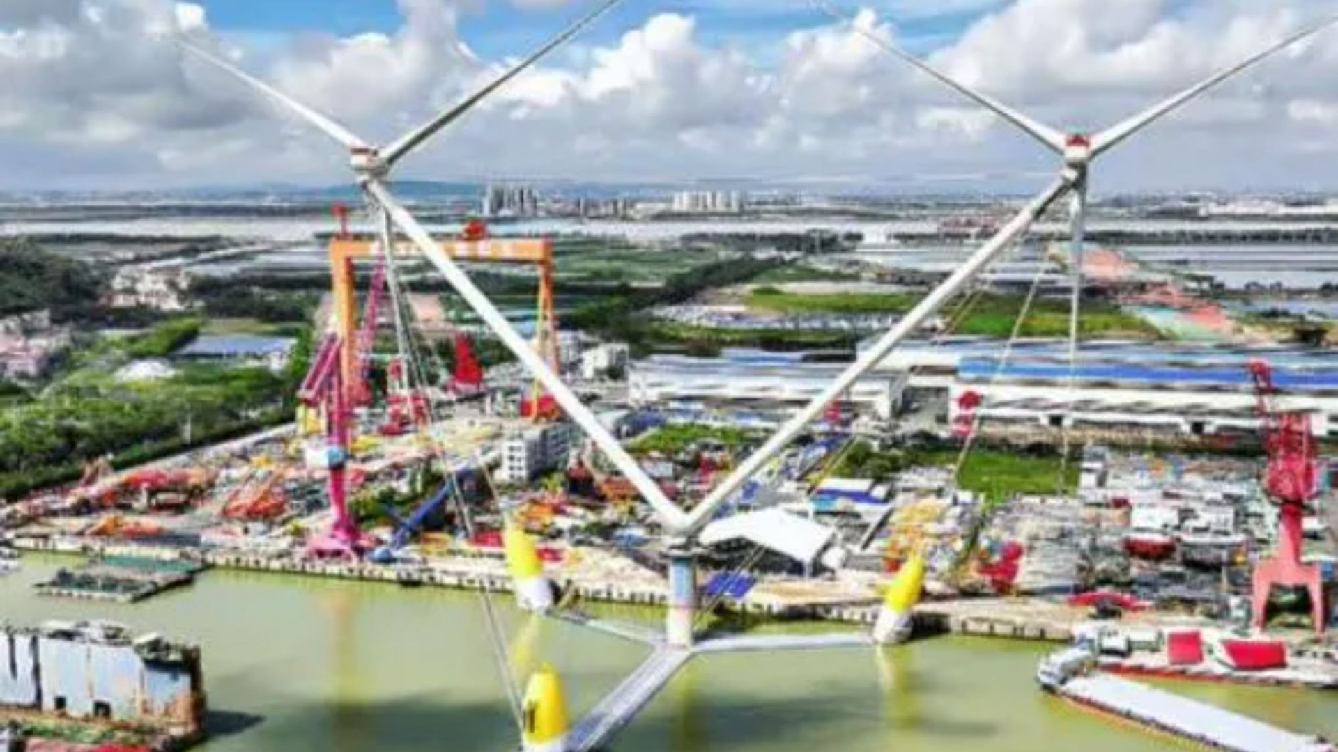 THE world’s largest floating wind turbine that can harness enough energy to power an entire town has been unveiled in China.